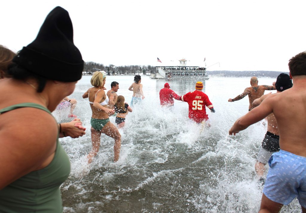 Walworth Times Jan. 9 – Williams Bay played host to its annual Polar Plunge event Jan. 2, starting from Williams Bay Beach. Hundreds turned out to watch the annual event, both from the beach and from a Lake Geneva boat tour. (Penny Gruetzmacher photo)