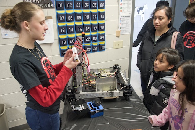 (Whitewater Register, Feb. 19, 2026) The Whitewater High School Ferradermis Robotics team recently held a work day open house for about 100 visitors. (Tom Ganser photo)