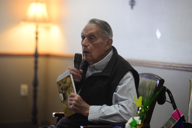(Waterford Post/Westine Report, March 19, 2026) Martin Schreiber shares his experiences as a caregiver for his wife Elaine, who was diagnosed with Alzheimer’s disease, during a March 11 event at Arbor View Assisted Living in Burlington. (Jason Arndt photo)