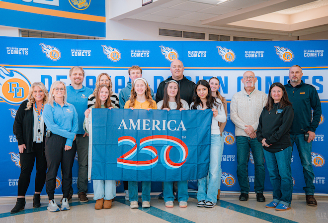 (Delavan Enterprise, April 16, 2026) Delavan-Darien High School is one of many Walworth County schools to receive an America 250 flag. (Dre Medina photo)
