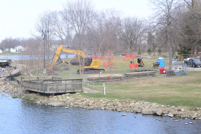 (Standard Press, April 2, 2026) Heavy machinery and some materials began arriving to the Echo Lake Dam last week before the long-awaited modification project of the non-compliant structure. Crews planned to start the job on Wednesday, weather permitting. (Jason Arndt photo)